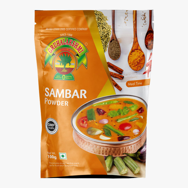 Sambar: A healthy dish with a lot of flavor and rich aroma; it is not just a gastronomical delight but also the most perfect accompaniment nutritious morning meal with IDLYs and DOSAs and a sumptuous lunch with steaming white rice. The treasure chest of authentic delicacies from a Brahmin home. Treasure Trove of Tastes, Aroma and Health Presenting you with the varied authentic tastes and aromas of the Gruhalakshmi Spice Mixes – a key ingredient for a healthy sumptuous meal. Take your picks and… Let the journey of the array of Gruhalakshmi Spice Mix products begin… From the tiered chambers of your spice box to your hearts!